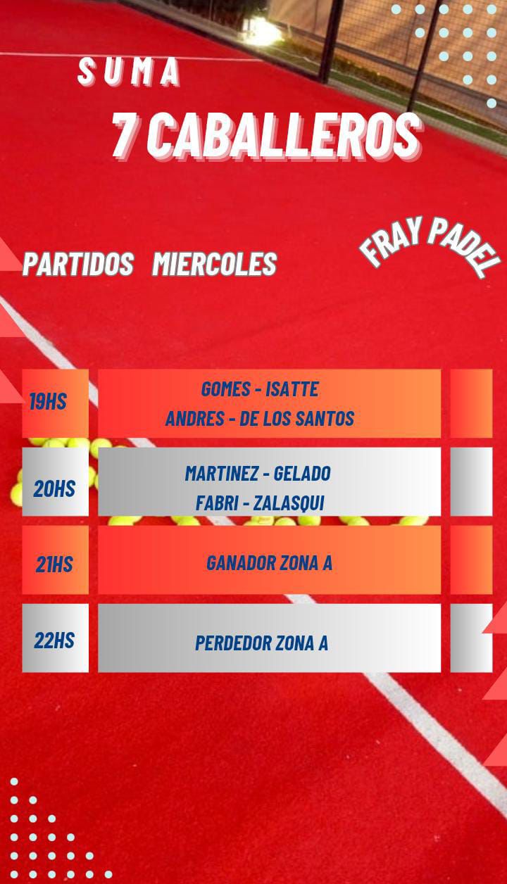 Continuó la disputa del Torneo Suma 7 Caballeros en Fray Pádel. El martes obtuvieron victorias las...