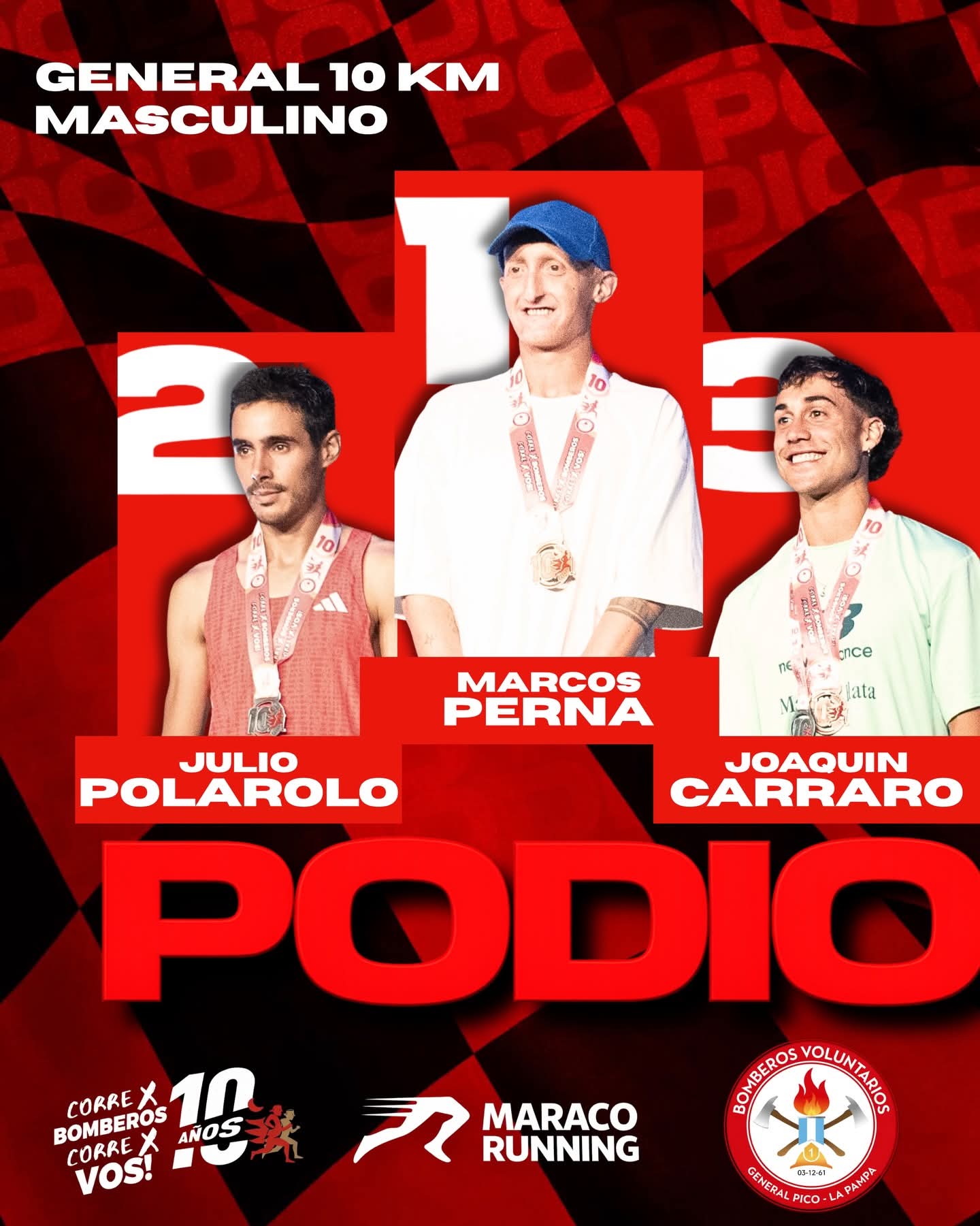 El atleta treslomense Marcos Perna tuvo una destacada actuación el pasado fin de semana al imponerse en la prueba principal de los 10 kilómetros en la 10° edición de “Corre x Bomberos, Corre x Vos”, disputada en General Pico.